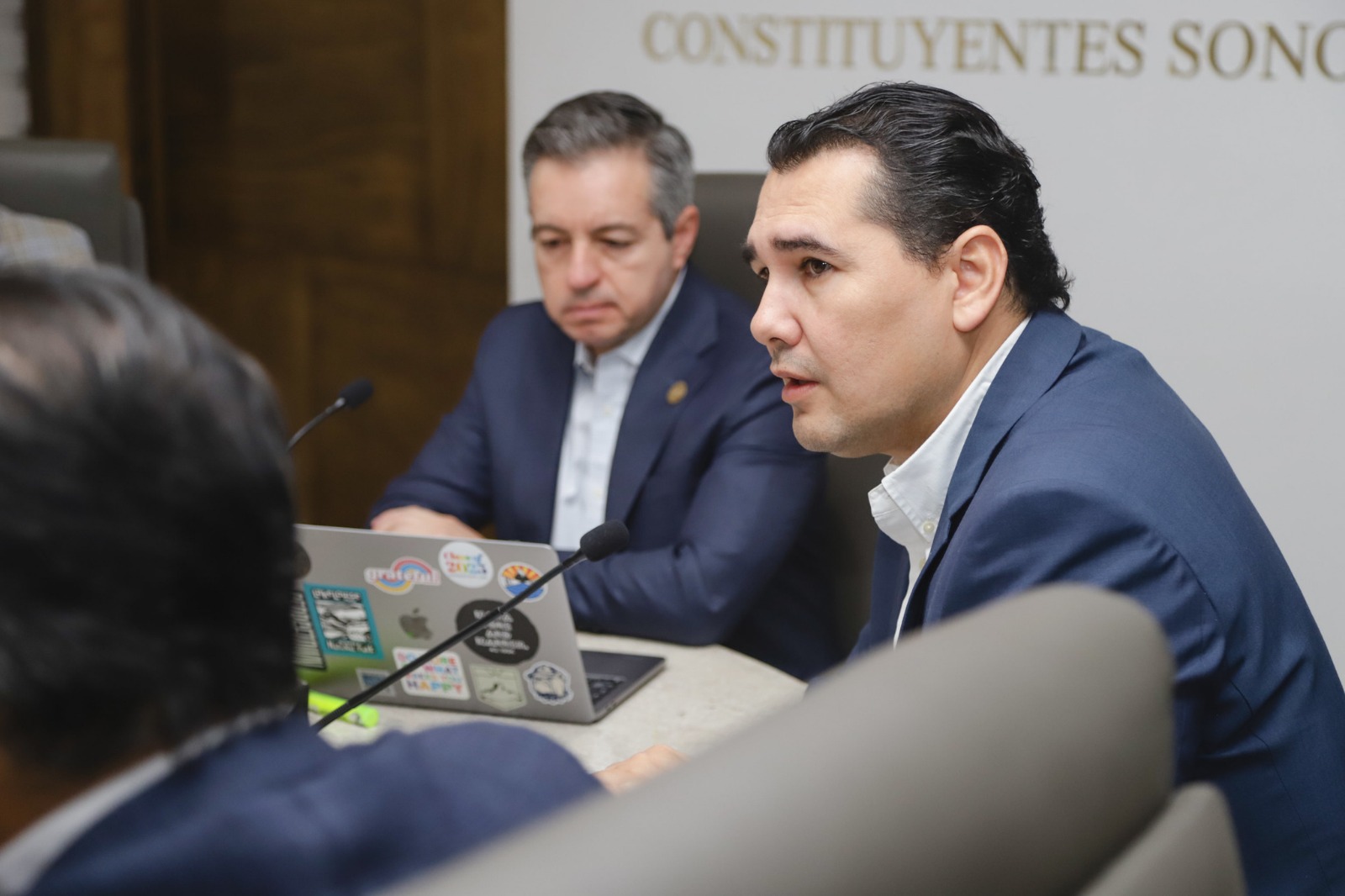 El diputado Omar Francisco Del Valle Colosio (PVEM), presidente de la Comisión del Agua, en compañía del diputado Fermín Trujillo Fuentes (NAS), presidente de la Comisión Especial del Río Sonora, explicó que la reunión tuvo como propósito analizar el Plan Hídrico y sus beneficios para distintas regiones del estado, mediante la mejora en la captación, uso y distribución del agua, en apoyo al desarrollo comunitario y de las actividades productivas.
