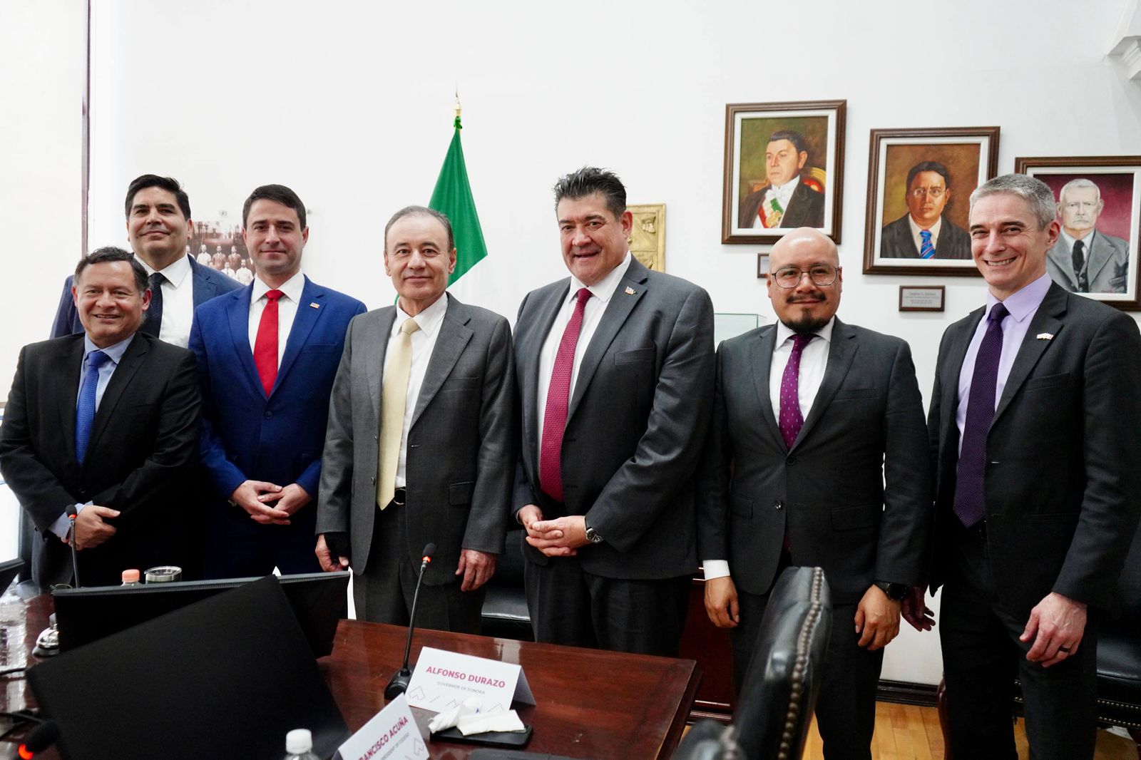 En una serie de visitas al Puerto de Guaymas, el mandatario estatal sostuvo reuniones con el subsecretario del Departamento de Energía, Tommy Joyce y el cónsul Drew Hoster, con quienes acordó acelerar proyectos prioritarios, entre ellos la instalación de una planta de gas natural licuado con inversión estimada en 6 mil 800 millones de dólares, que permitirá reducir hasta en 30 por ciento el costo del combustible en la entidad. Asimismo, se proyecta un gasoducto de Hermosillo a Guaymas para conectar la cuenca de Texas con el Pacífico, reforzando la seguridad energética regional.